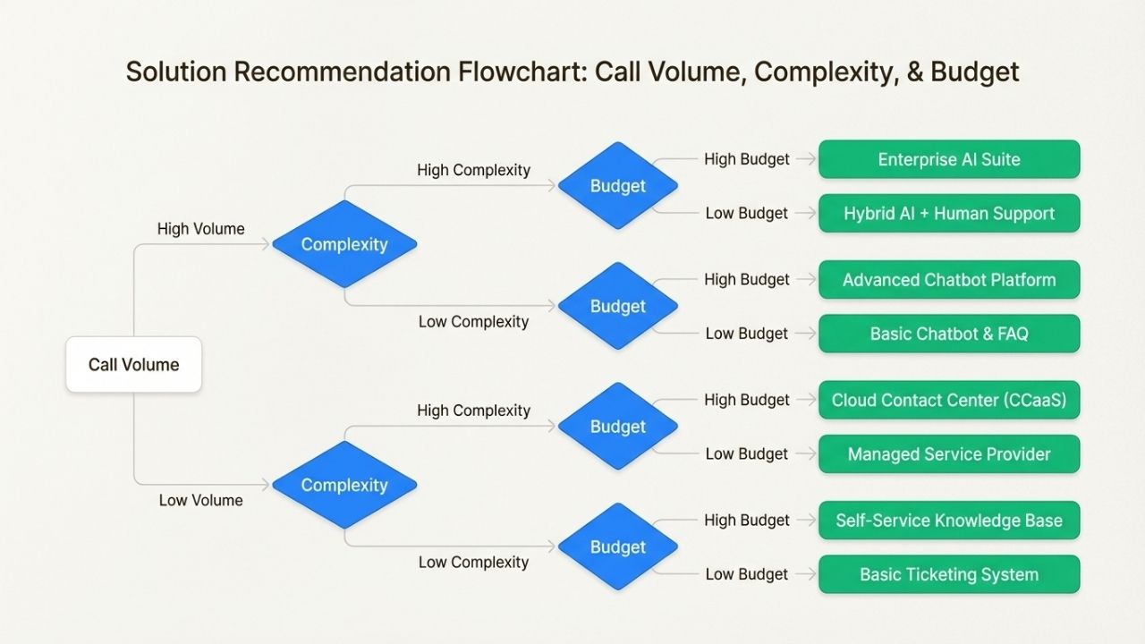 Start with your monthly call volume. If you're handling fewer than 100 calls per month, sophisticated solutions are likely unnecessary.