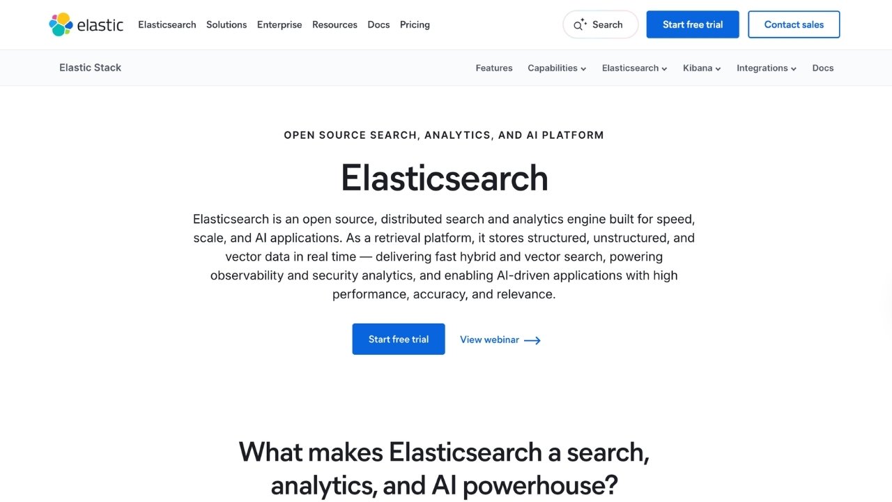 Best for: Large enterprises with complex search requirements, teams that need to store billions of documents, or organizations that want a unified platform for search, logging, and analytics.