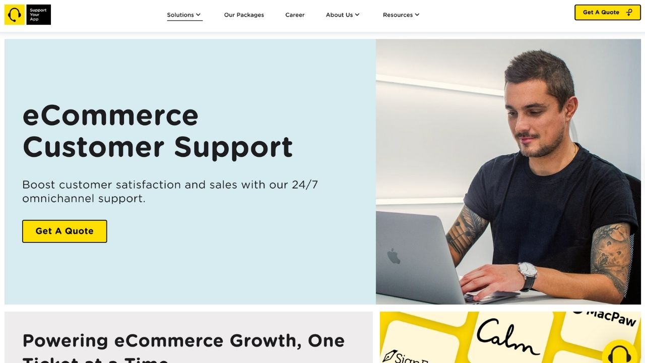 They have a dedicated Shopify Customer Support service page with agents pre-trained on e-commerce operations.
