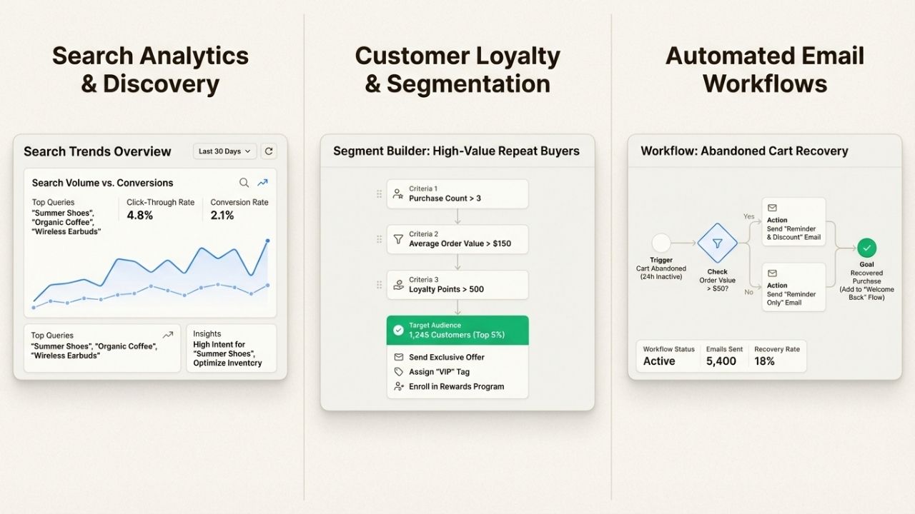 Unlike general-purpose search tools, every feature is designed to drive revenue and conversion metrics.