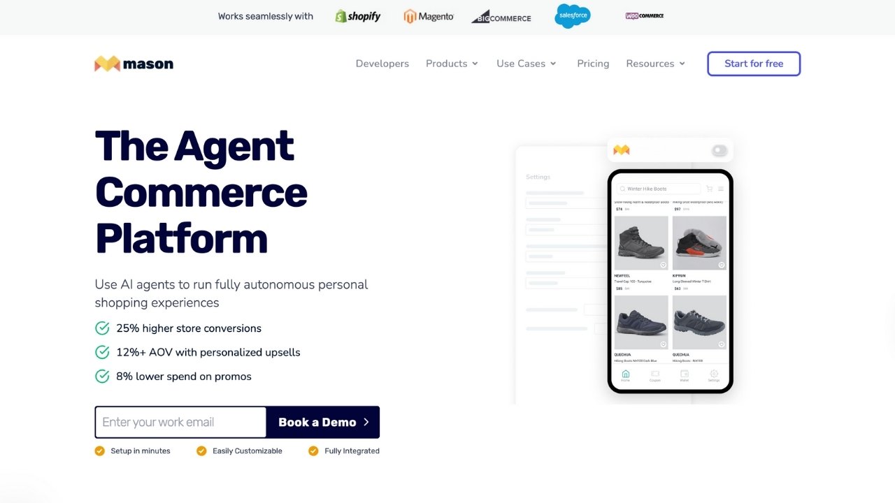 Mason is a no-code platform for building custom Shopify store experiences without developers.