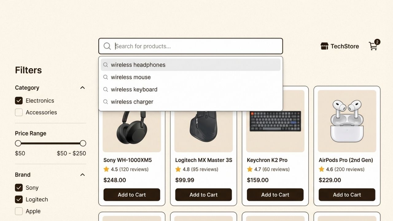 Budget options like Searchanise (free for Shopify) and Meilisearch ($30/month) work for small stores. Mid-range solutions like Luigi's Box and Clerk.io typically range from $100-500/month. Enterprise options like Algolia and SearchSpring can cost $500+ depending on usage.