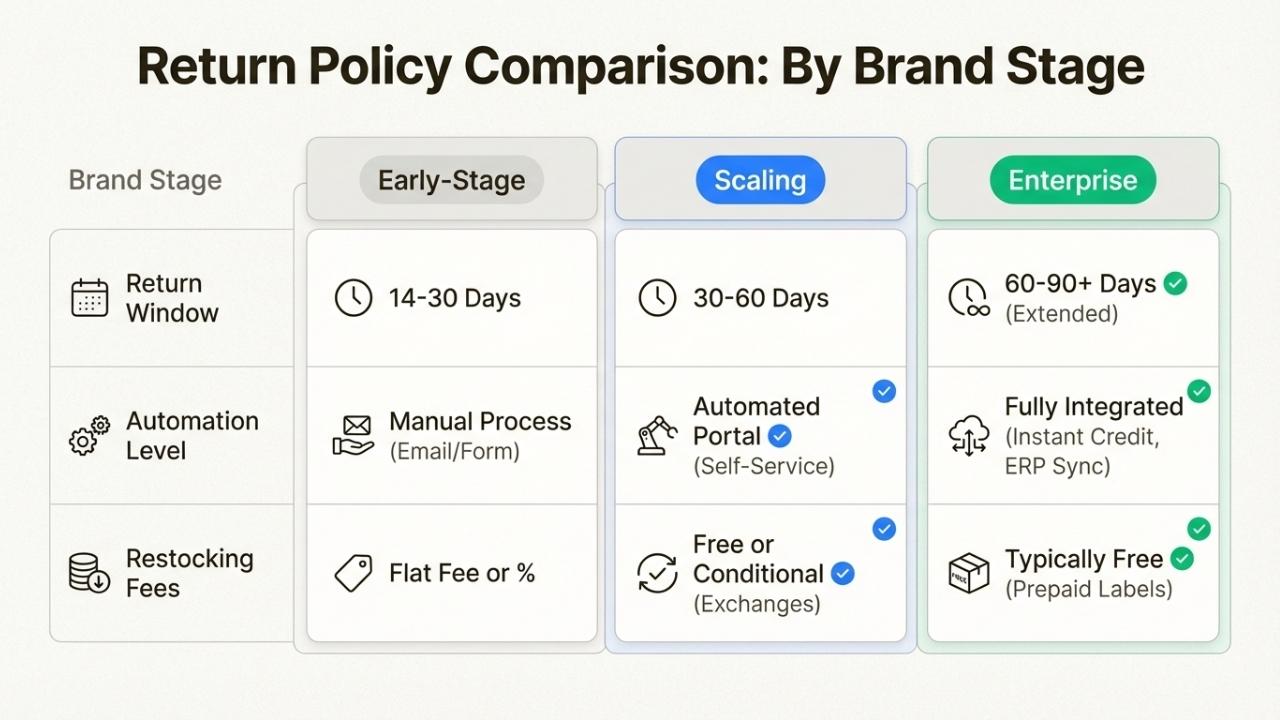 - Extended windows (60-90 days): Works for high-ticket items with lower return frequency, signals confidence in product quality