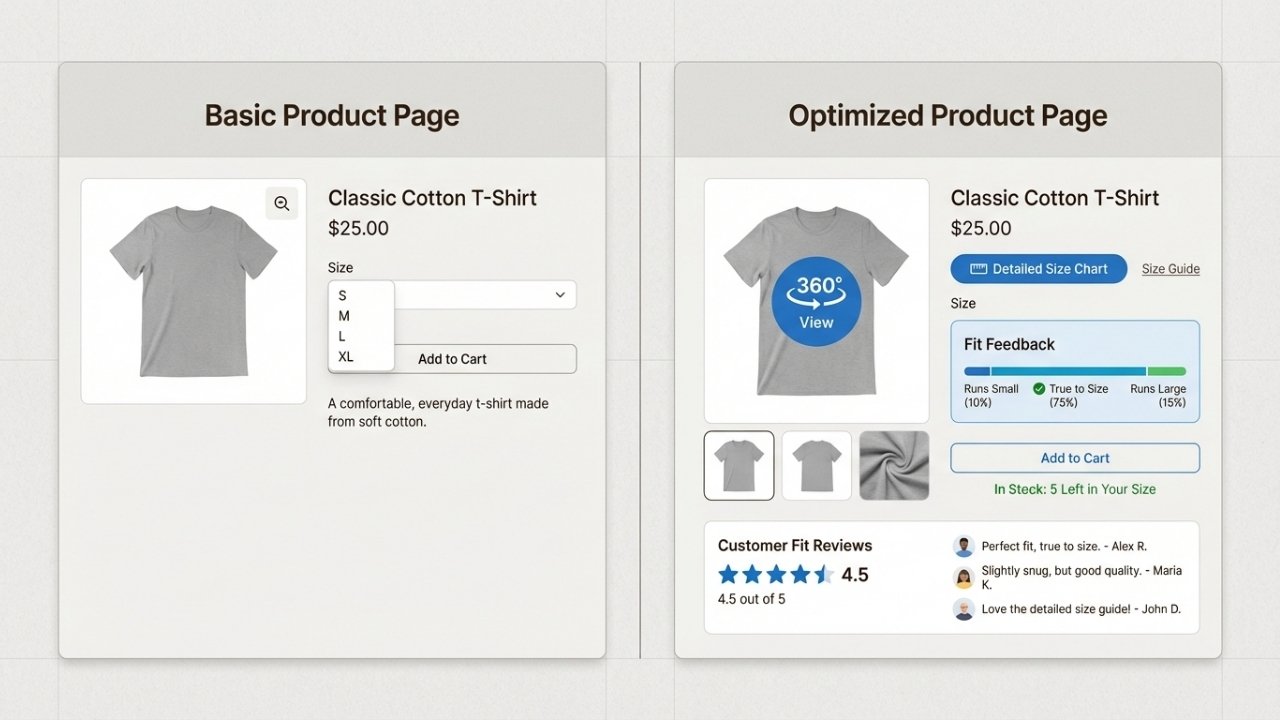 Better product pages, fit guidance, and exchange incentives can maintain conversion while cutting the volume of returns you actually process.