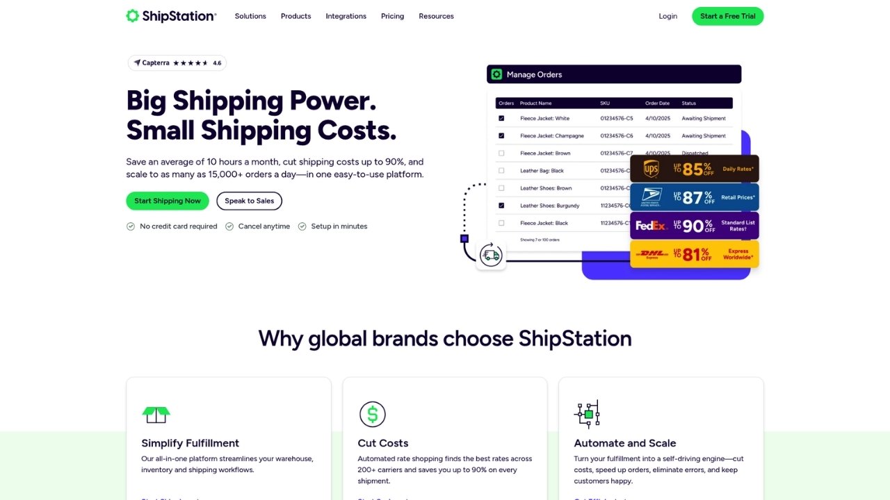Best for: Multi-channel sellers who need to manage orders from multiple platforms in one place. If you're selling on Shopify, Amazon, and eBay simultaneously, ShipStation keeps everything organized.