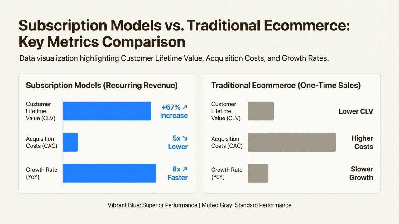 The numbers are significant. The global subscription ecommerce market reached $278 billion in 2024 and is projected to hit $6.37 trillion by 2033.