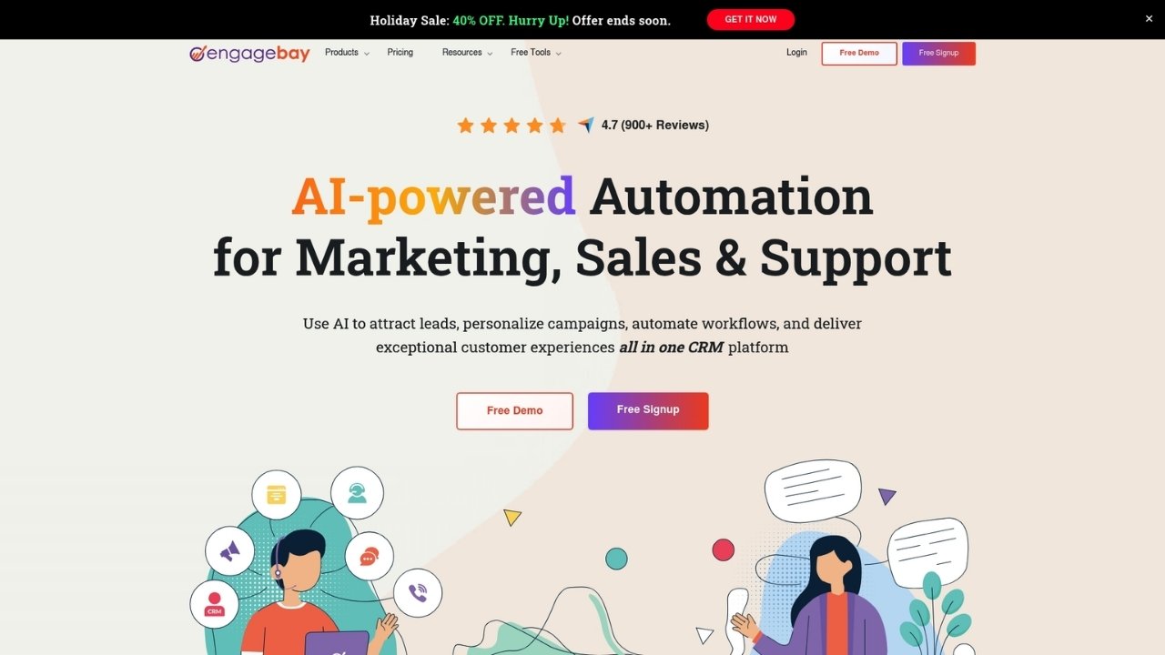 EngageBay takes an all-in-one approach, combining CRM, marketing automation, and customer support in a single platform.