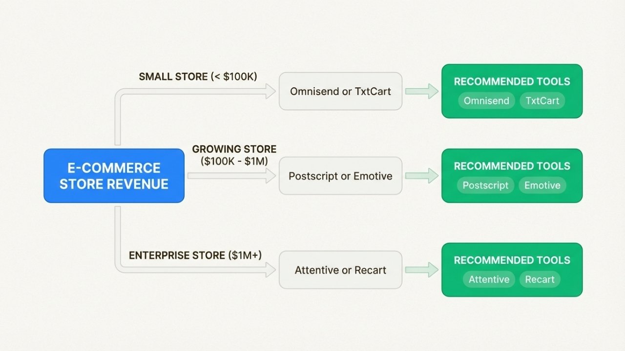 Your monthly SMS volume: Low volume (under 1,000 messages/month) favors pay-per-message tools like SMSBump. High volume makes subscription models like TxtCart or Omnisend more economical.