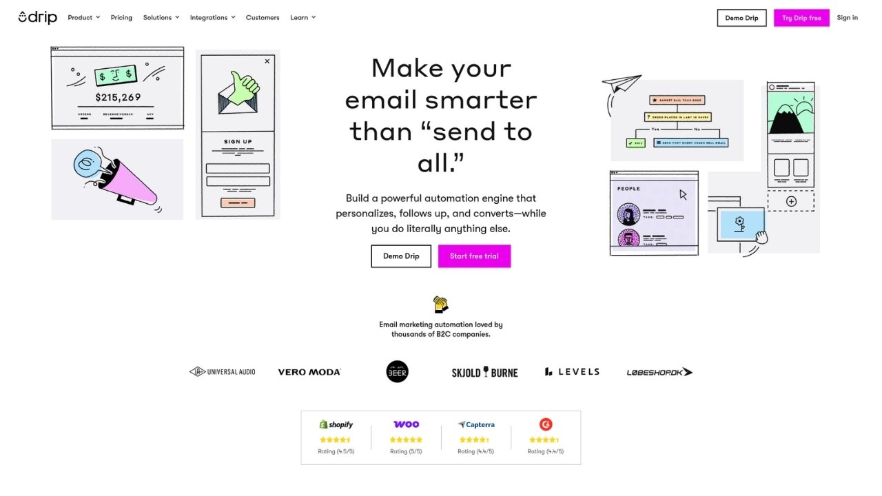 Drip is an e-commerce CRM focused on helping online retailers build customer relationships and drive repeat purchases. It emphasizes revenue attribution and reporting to show the direct impact of your marketing.