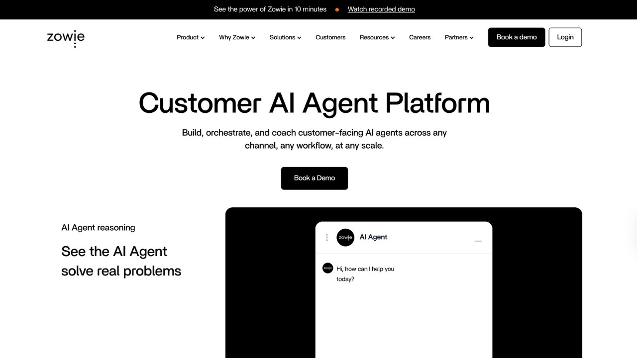 The key differentiator is Zowie's "deterministic AI" designed to eliminate hallucinations.
