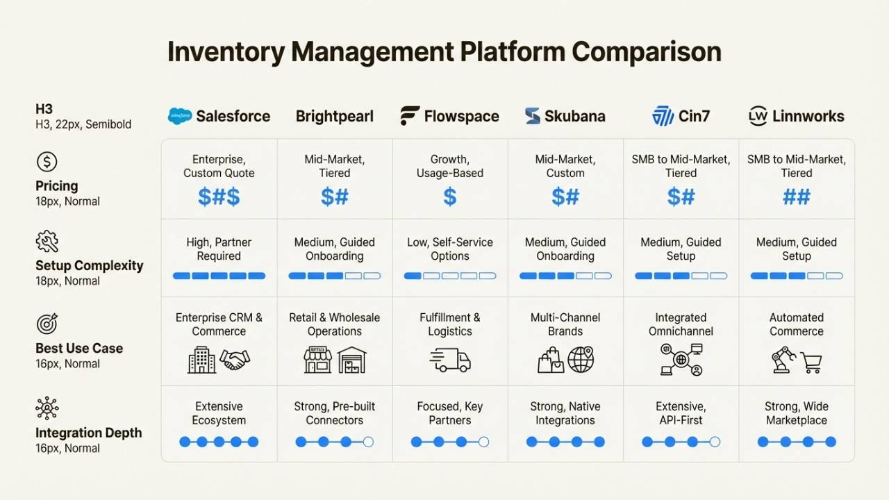 Skubana (now part of Extensiv) excels at marketplace selling. If Amazon, Walmart, and eBay represent significant portions of your revenue, the platform's channel-specific features justify the investment.