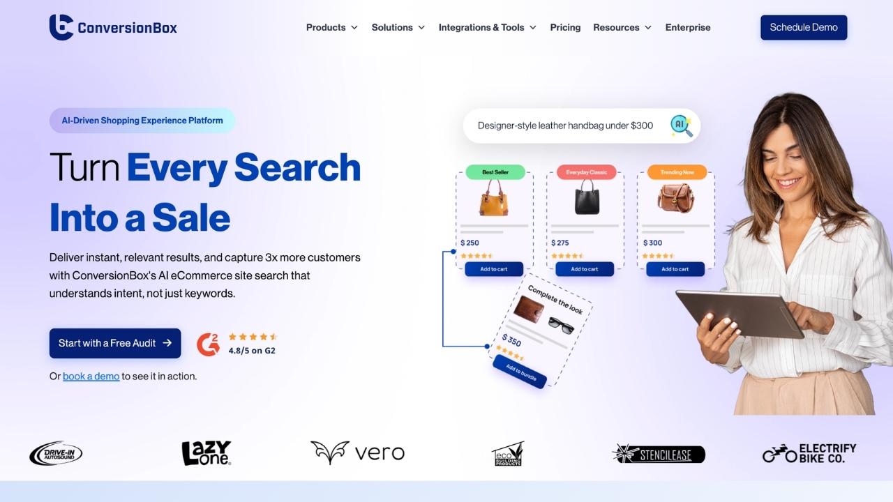 ConversionBox targets SMBs and mid-market retailers who want AI search without enterprise complexity or pricing.