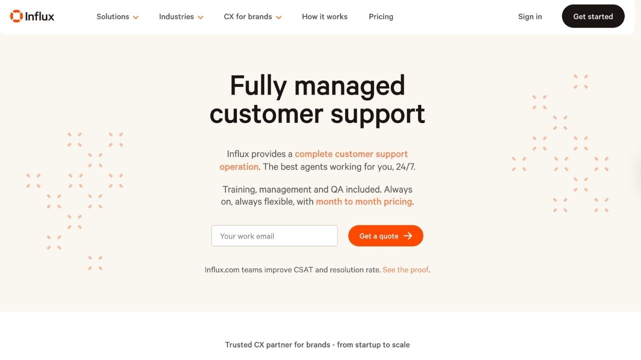 Influx also offers an AI Agent Management service. If you're already using Gorgias, Intercom, or similar tools, they'll optimize your existing AI agents rather than replacing them.