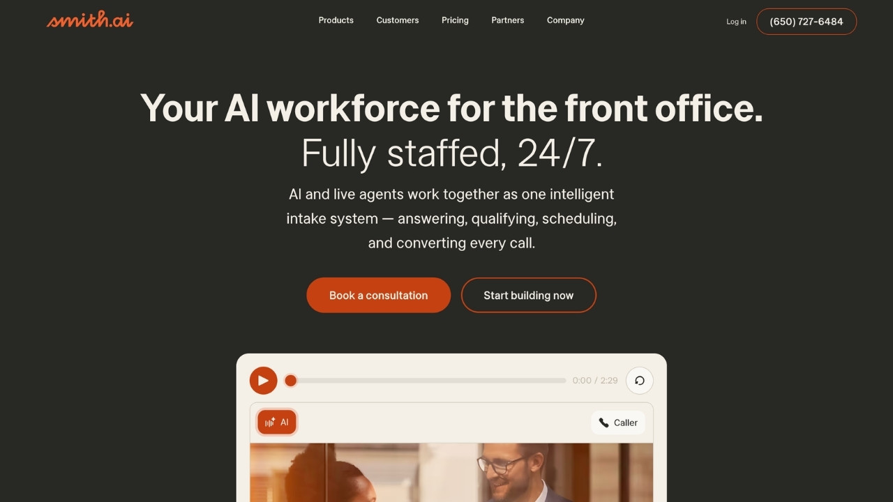 Smith.ai takes a hybrid approach, combining AI-powered call handling with live North America-based agents.