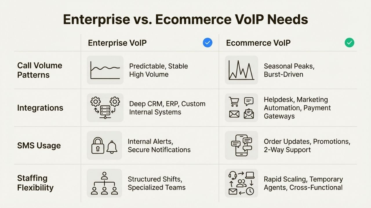 Support quality. Uptime guarantees matter. When your phones go down during a flash sale, you lose orders.