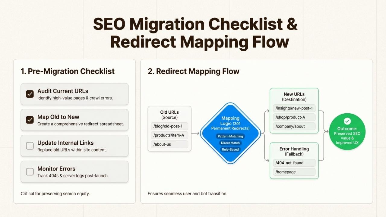 The bad news? A poorly executed migration can cost you months of lost traffic, broken customer experiences, and revenue you'll never recover.