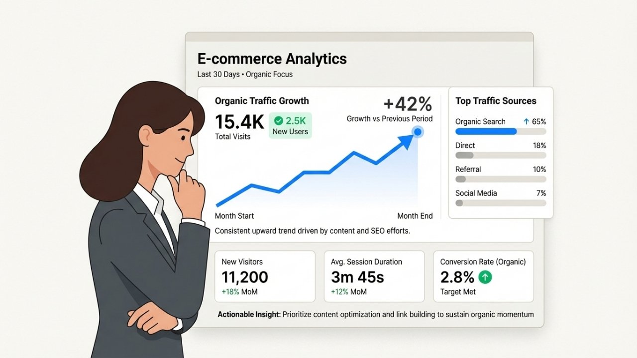 Conversion rate from organic: How many organic visitors make a purchase. This tells you if you're attracting the right traffic.