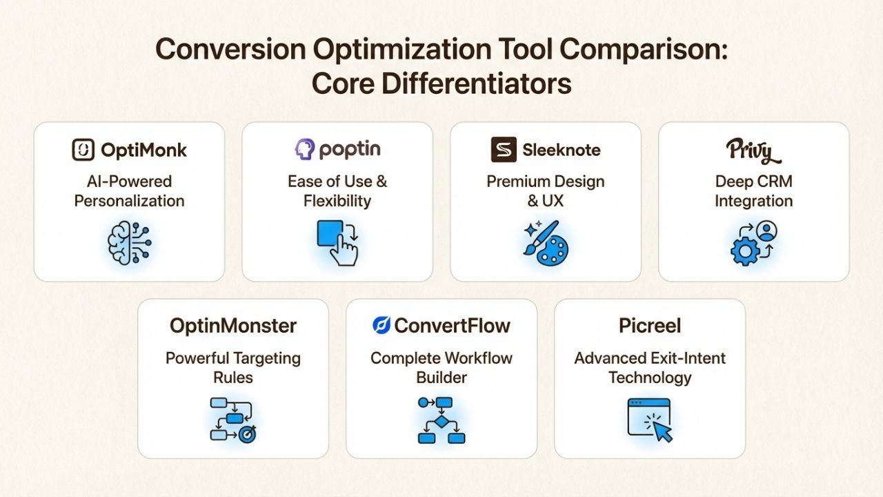 ConvertFlow leads in CRM-level personalization, allowing you to target visitors based on data from your customer database. OptiMonk offers strong AI-powered personalization specifically designed for e-commerce product recommendations.