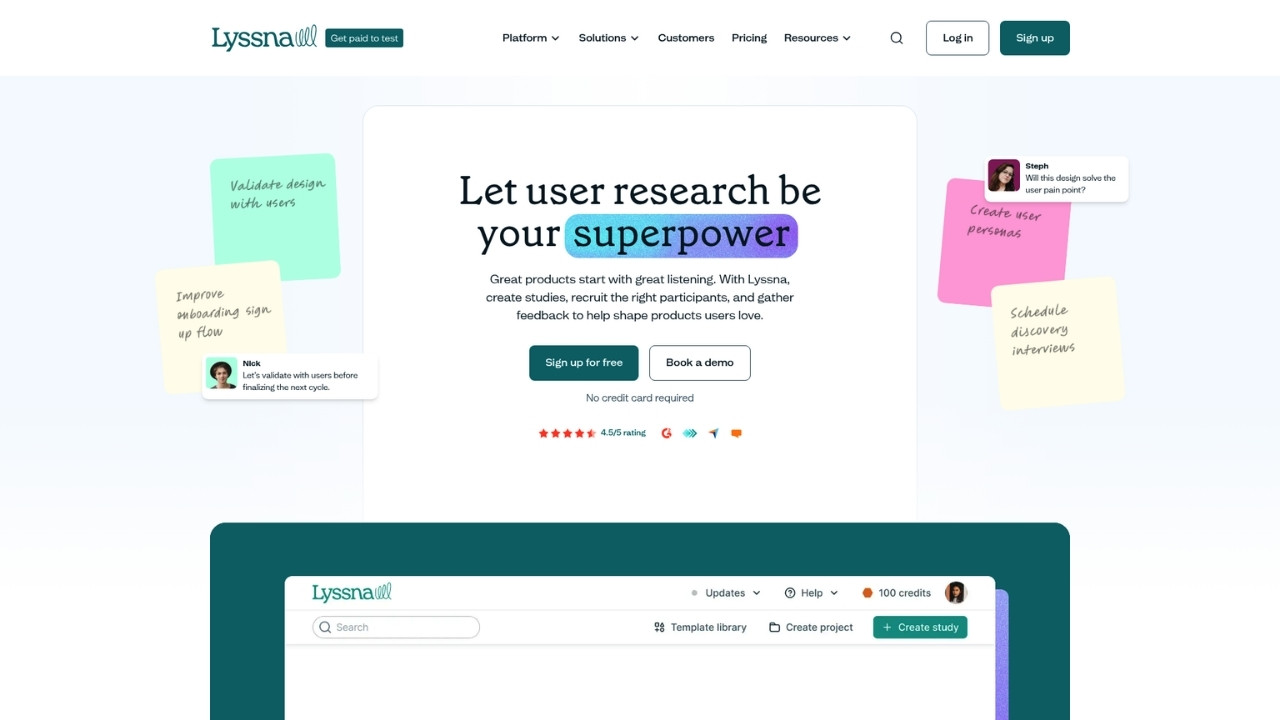 Lyssna offers a free plan with 1 study per month and 15 self-recruited responses. Suzy also has a free tier with 25 credits for exploring the platform.